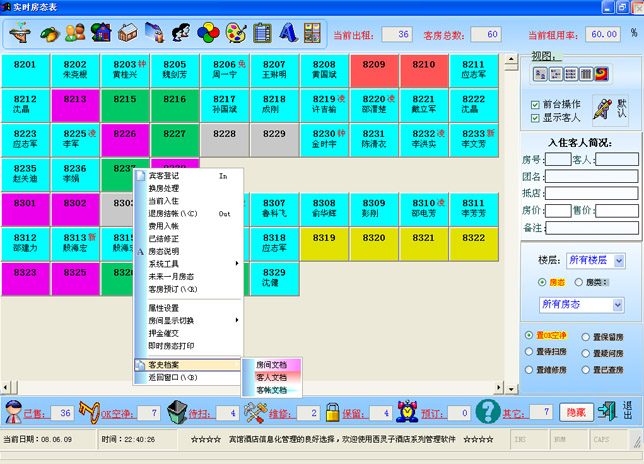 实时房态表