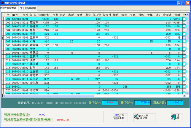 时段营业分析统计
