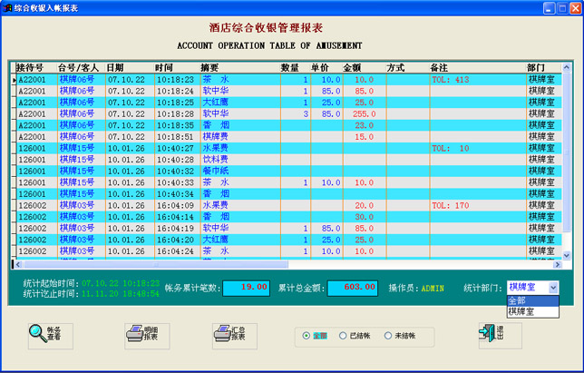综合收银入账报表