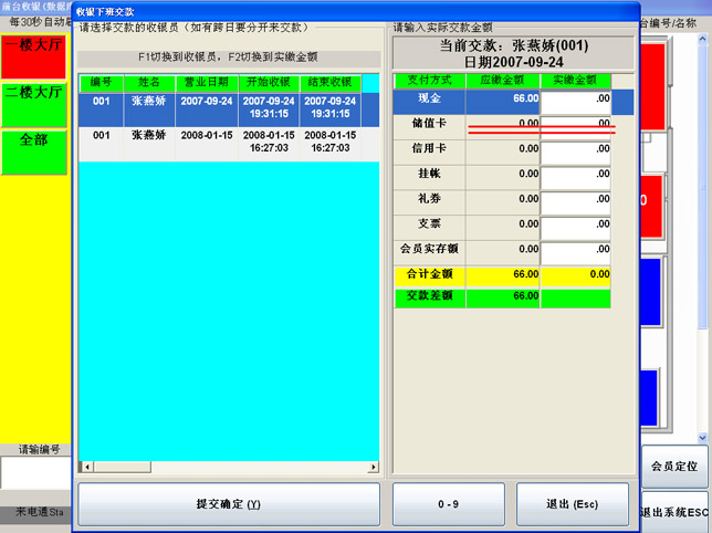 收银下班交款