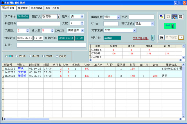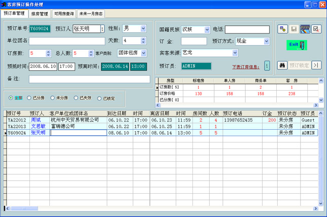 客房预订操作处理