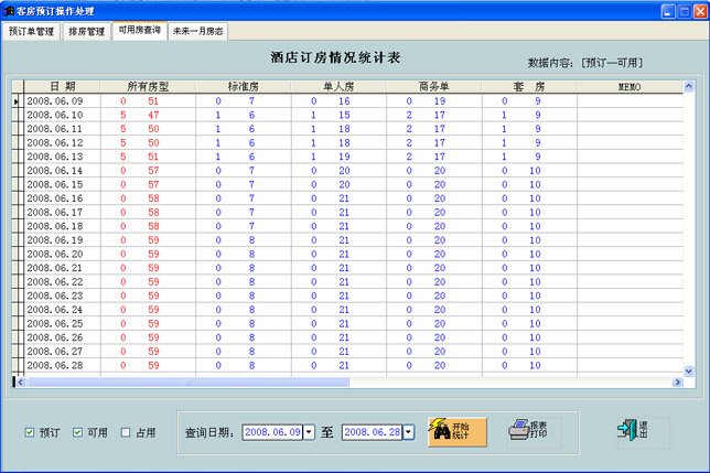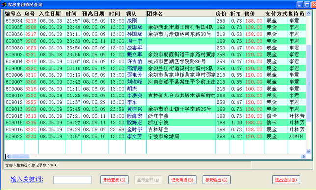 客房出租情况查询